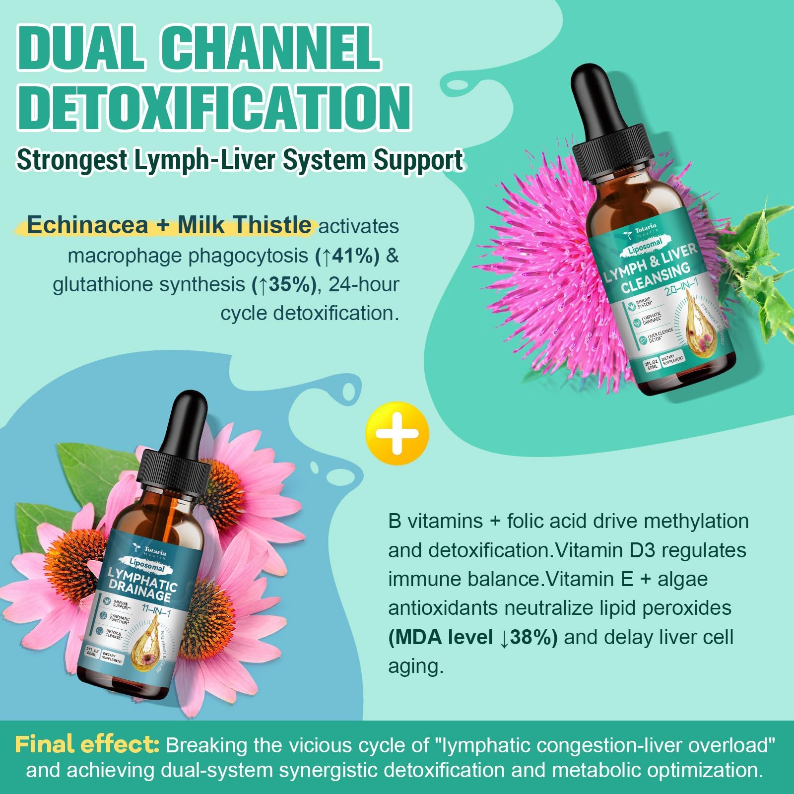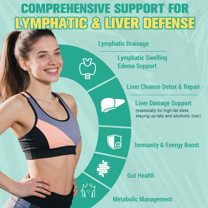 - Lymph + Liver Dual System Support: Rich in Milk Thistle. Artichoke. Echinacea. Dandelion. Cleavers Herb. Burdock Root. Rutin. Algae Rich In Fucoxanthin. Licorice. Astragalus Membranaceus. Cranberry. Honeysuckle. Bupleurum Chinense natural herbal extracts. Comprehensive support for lymphatic drainage. liver detoxification. immune function and metabolic efficiency.