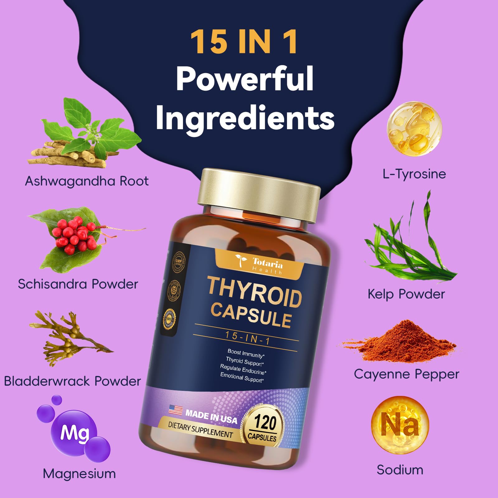 - Better than Other Brands: Our thyroid support for woman and man use 15 natural ingredients contains 400mg L-Tyrosine. 400mg of ashwagandha. 250mg of schisandra. 50mg of bladderwrack. 50mg of Kelp. and 50mg of cayenne pepper in each serving to help maximize support your thyroid and body's health.