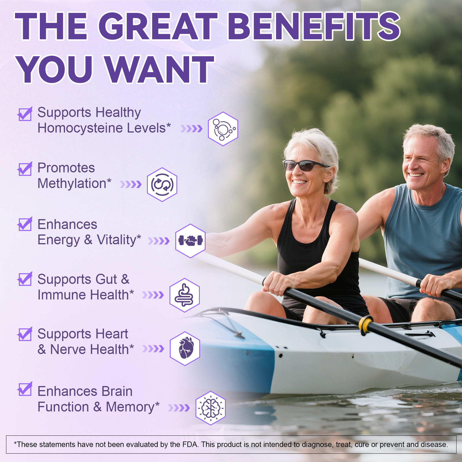 - 750mg High-Potency TMG for Homocysteine Balance: Each serving delivers 750mg of Trimethylglycine (TMG). also known as glycine betaine. a methyl donor that helps maintain balanced homocysteine levels—studies show it's vital for heart. liver and cognitive function. TMG also supports natural energy by aiding creatine* synthesis*. making it ideal for both active lifestyles and daily wellness.